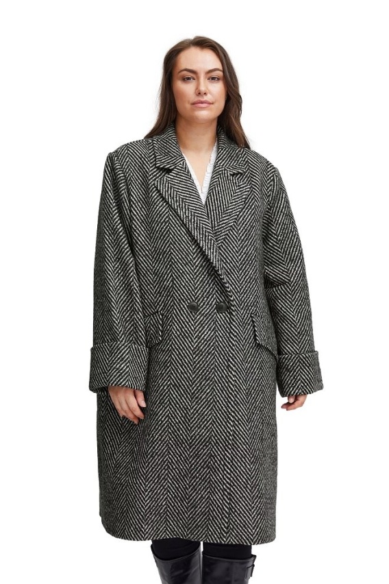FRANSA ELEGANCKI BIAŁO CZARNY PŁASZCZ WEŁNA F377