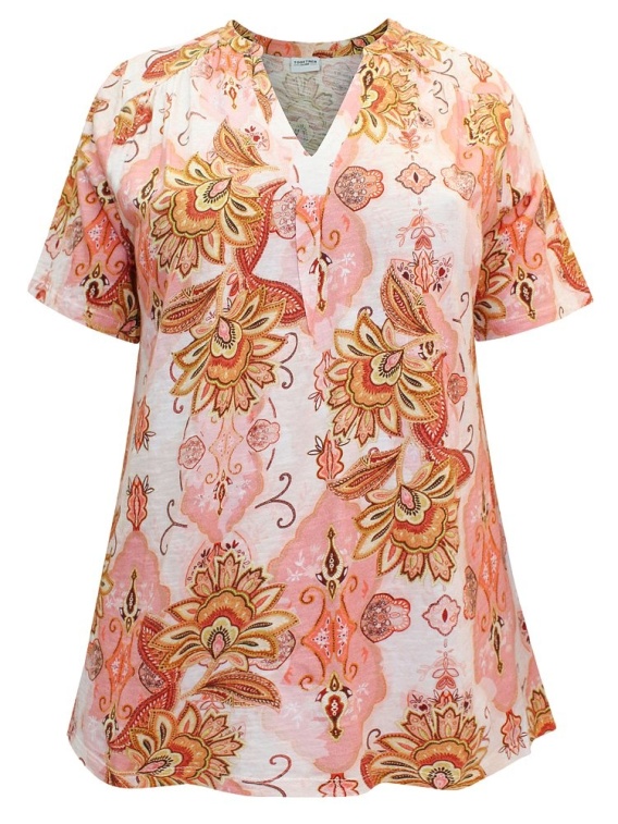 • Zdobiona nadrukiem w kwiaty w ciepłych odcieniach
