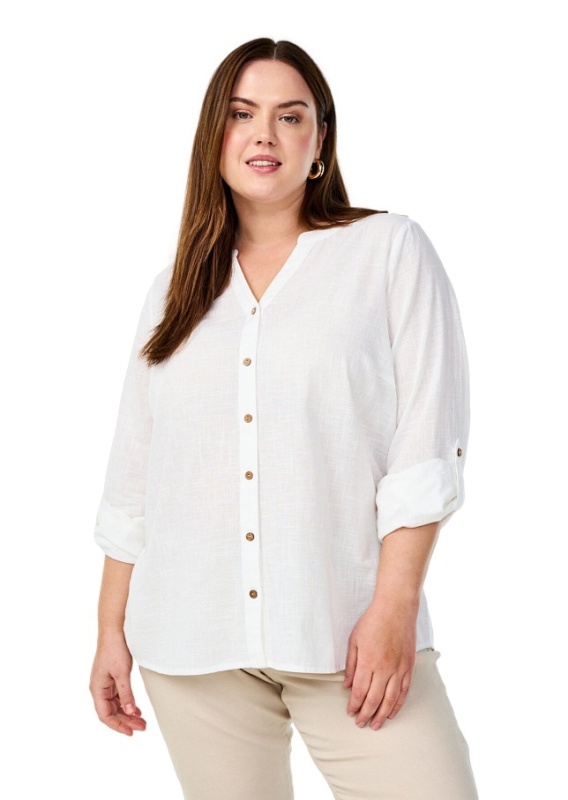 • Wygodna, klasyczna koszula bluzka w białym kolorze