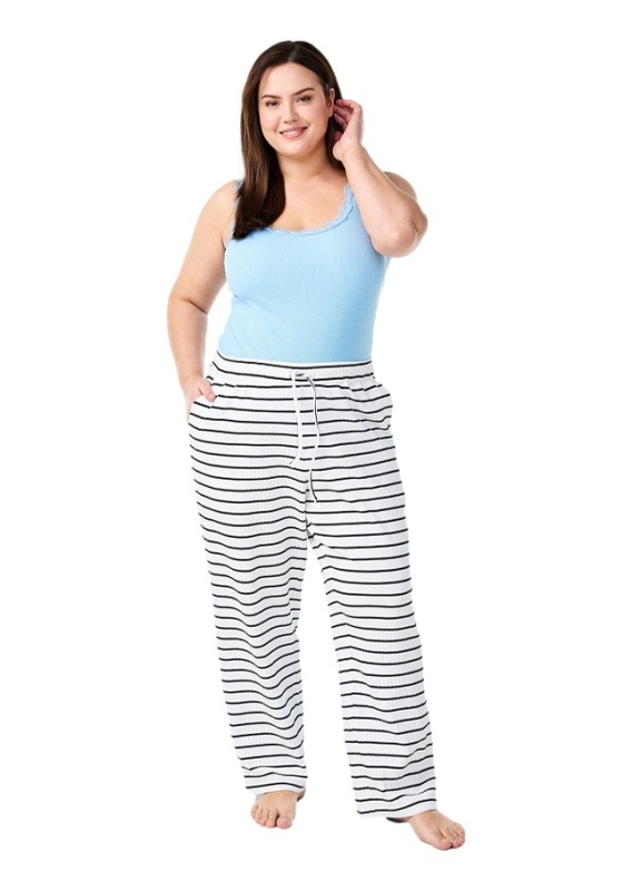 ZIZZI BIAŁE SPODNIE PIŻAMOWE W PASKI BAWEŁNA 088A