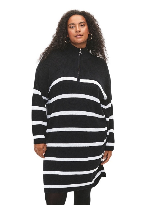 ZIZZI CZARNA DZIANINOWA SUKIENKA W PASKI SUWAK 150C
