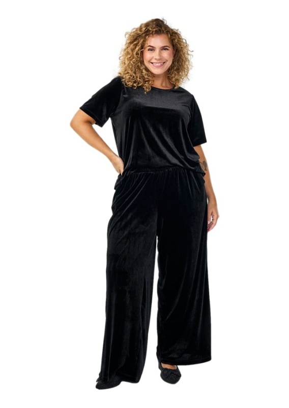 ZIZZI CZARNE SZEROKIE SPODNIE WELUROWE 336D