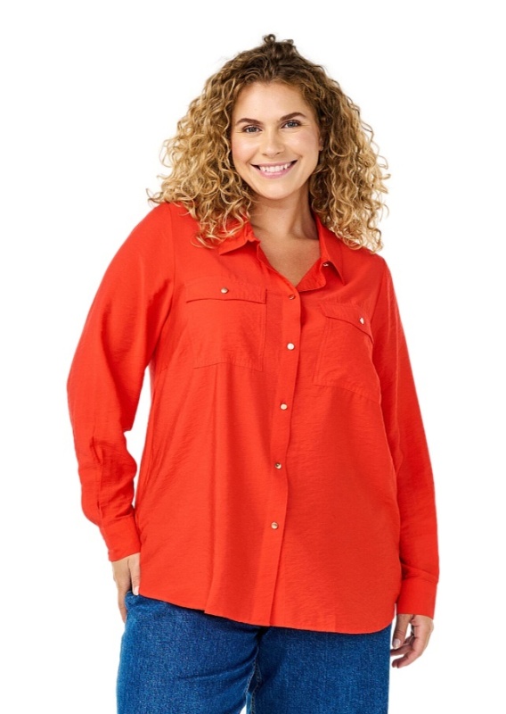ZIZZI KLASYCZNA CZERWONA KOSZULA KIESZENIE 599E