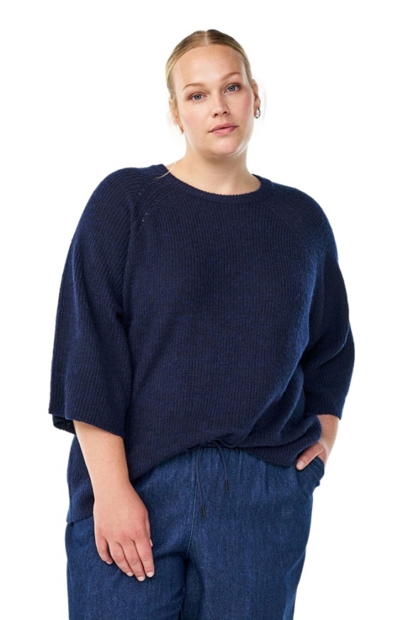ZIZZI LUŹNY GRANATOWY SWETER PRĄŻKI 475C