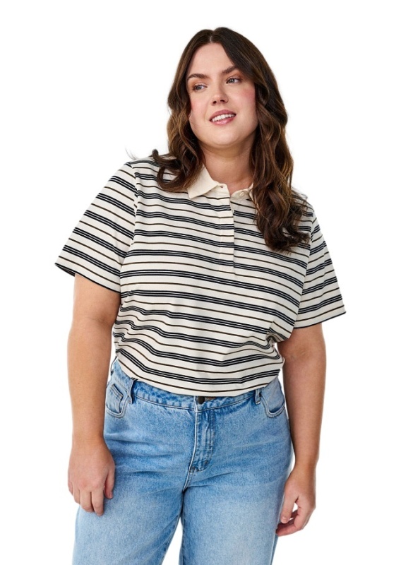 ZIZZI MODNA KOSZULKA BLUZKA POLO BIAŁA PASKI 611C