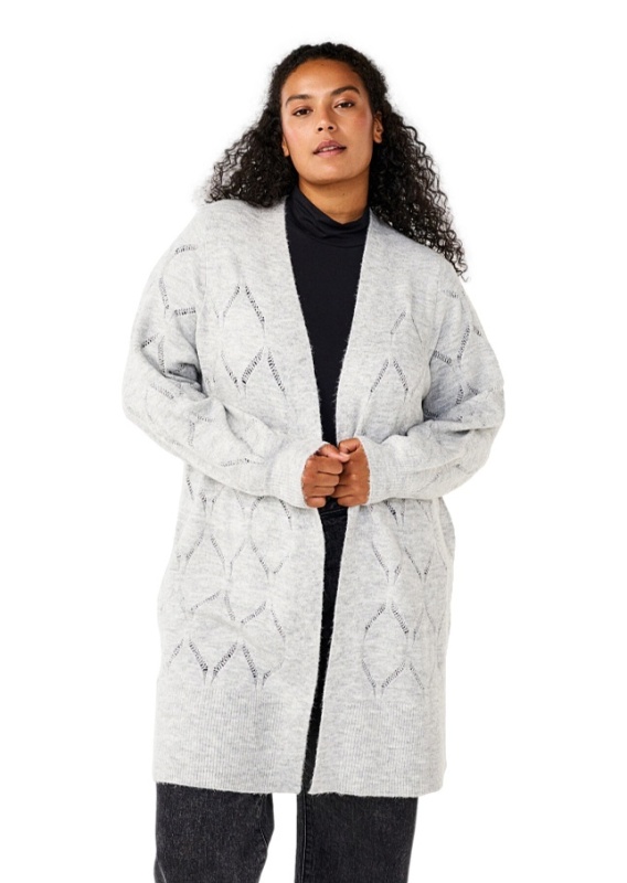 ZIZZI SZARY DŁUGI KARDIGAN AŻUROWY WZÓR 364A
