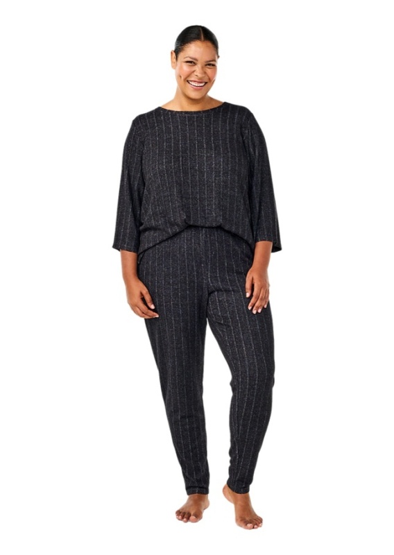 ZIZZI WYGODNE DRESOWE CZARNE SPODNIE PRĄŻKI 071B