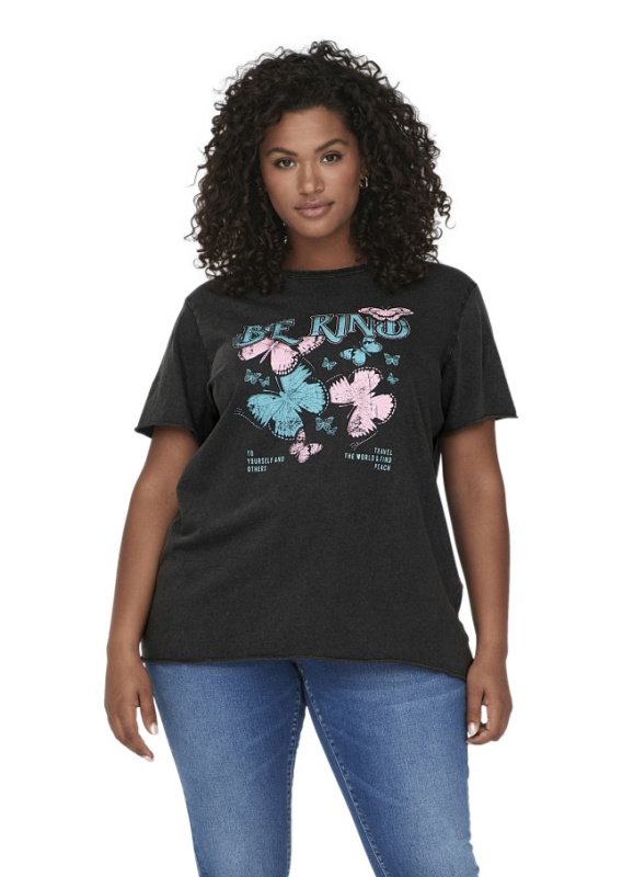 CARMAKOMA KLASYCZNY CIEMNOSZARY T-SHIRT NADRUK O623