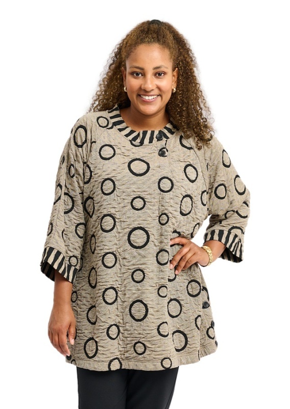 • Dekolt okrągły z czarnym wzorem, oraz dwoma guzikami