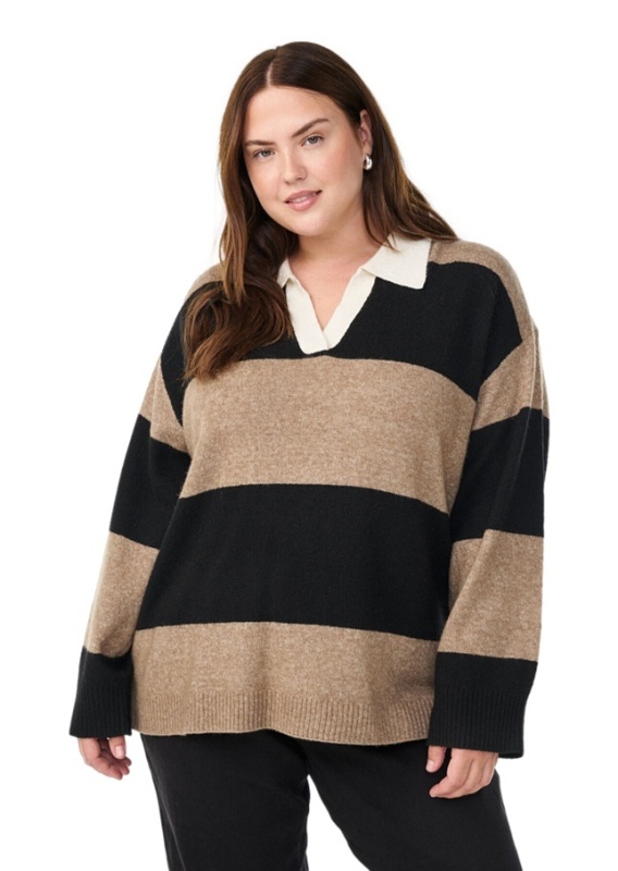 ZIZZI BEŻOWA DZIANINOWA BLUZKA W PASKI KOŁNIERZYK 473H