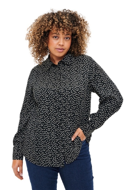 ZIZZI BLUZKA KOSZULA CZARNA GROCHY 016E