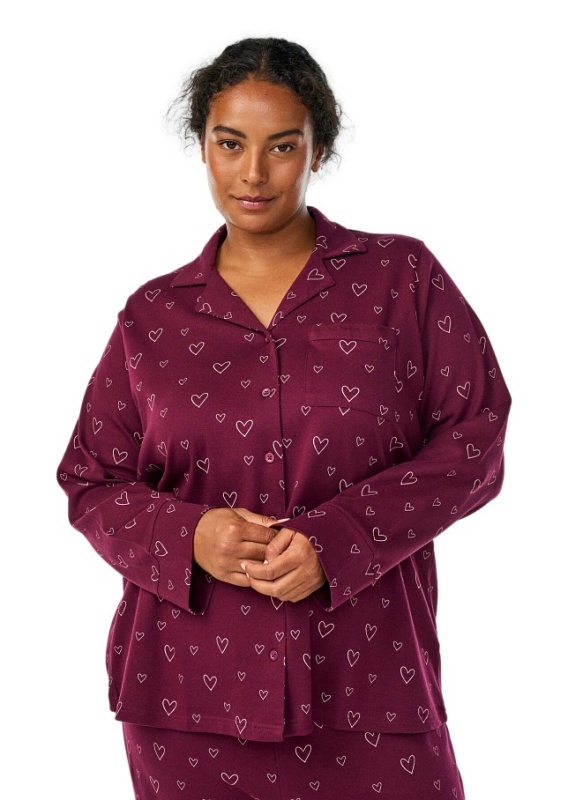 ZIZZI BORDOWA BLUZKA KOSZULA PIŻAMOWA SERCA 098A