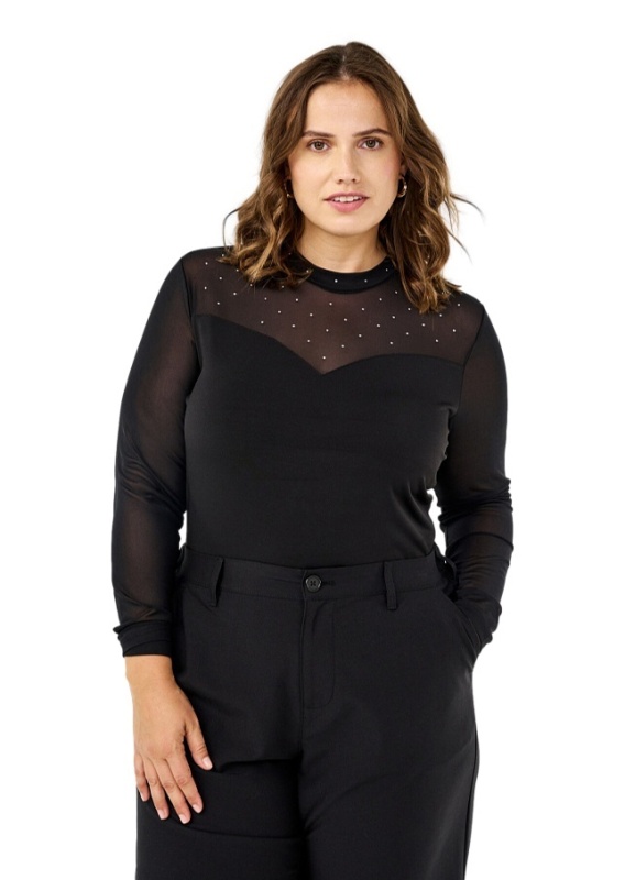 ZIZZI CZARNE IMPREZOWE BODY Z SIATECZKĄ CYRKONIE 282A