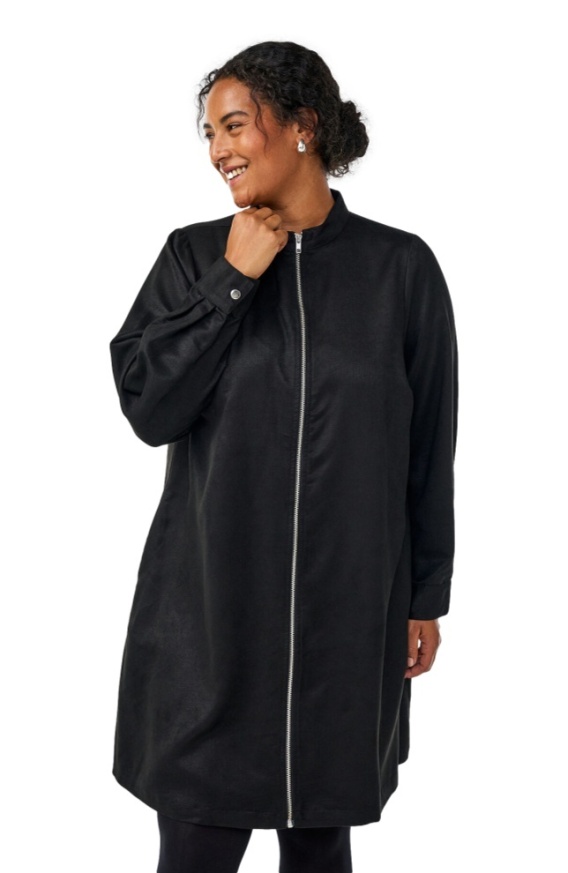 ZIZZI DŁUGA CZARNA KOSZULA TUNIKA ZAMSZ SUWAK 705A
