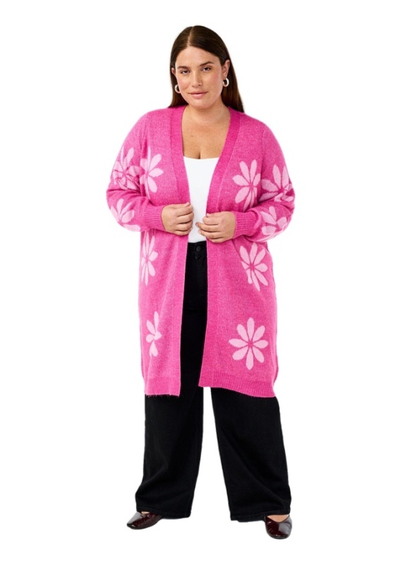 ZIZZI DŁUGI SWETER KARDIGAN RÓŻOWY KWIATY 410B