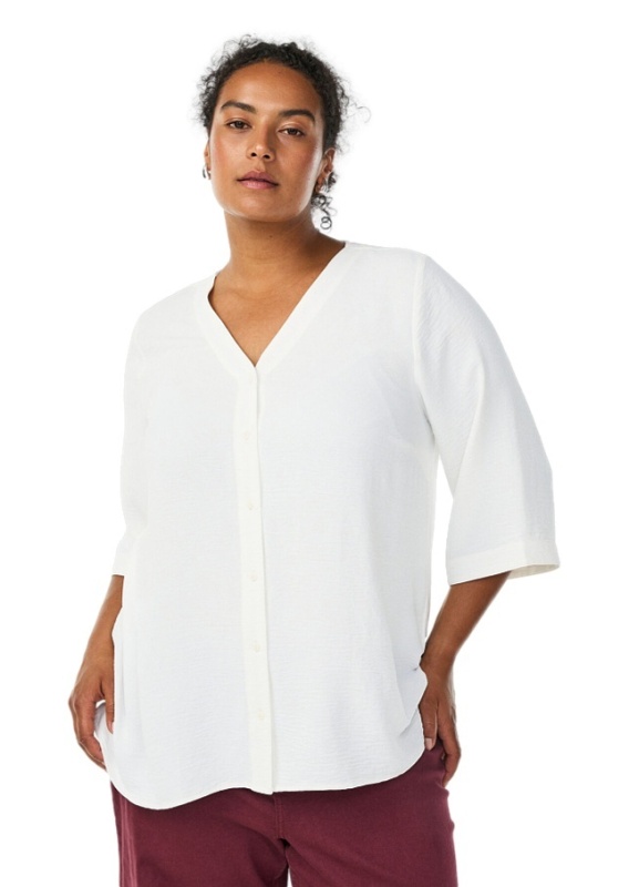 ZIZZI ELEGANCKA BIAŁA BLUZKA DEKOLT GUZIKI 054D