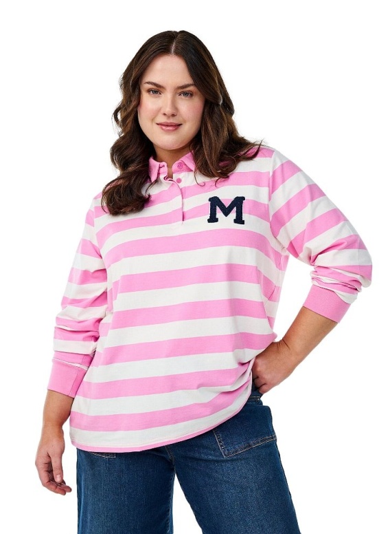 Modna bluzka w stylu polo w kolorze biało różowym