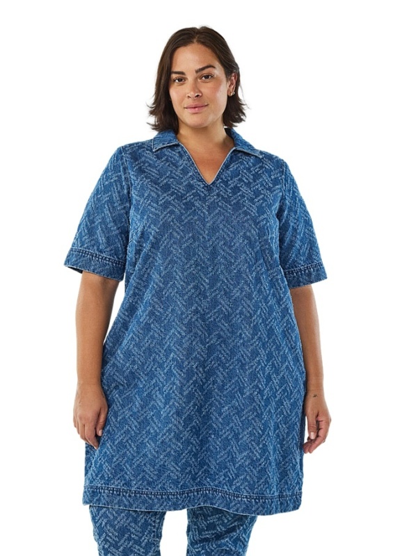 Modna sukienka w kolorze klasycznego ciemnego jeansu