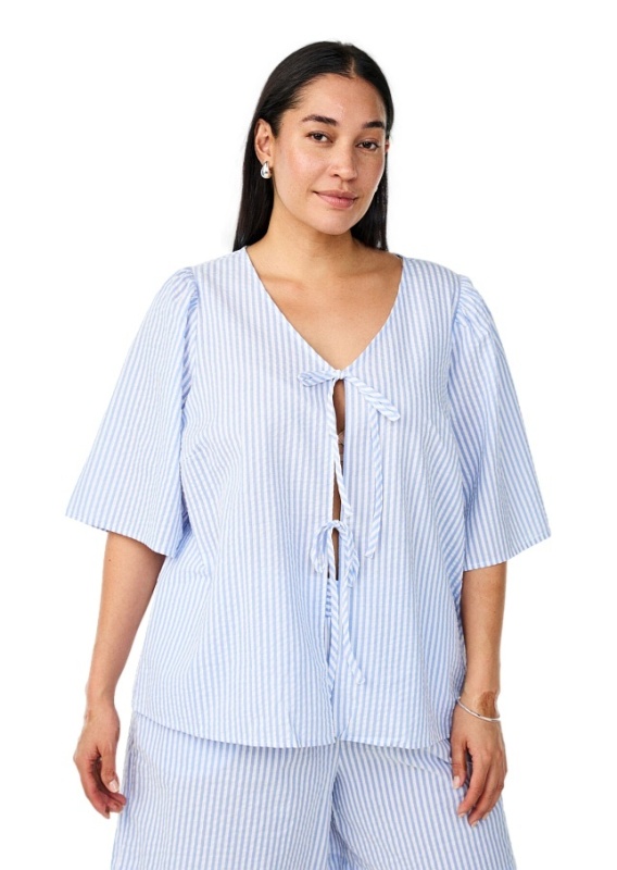 ZIZZI NIEBIESKA WIĄZANA BLUZKA W PASKI BAWEŁNA 051A