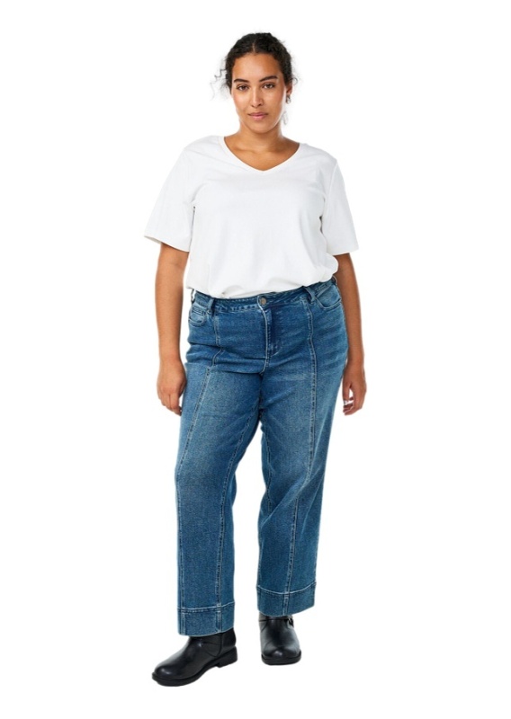ZIZZI NIEBIESKIE PROSTE JEANSY Z PRZESZYCIAMI 909E