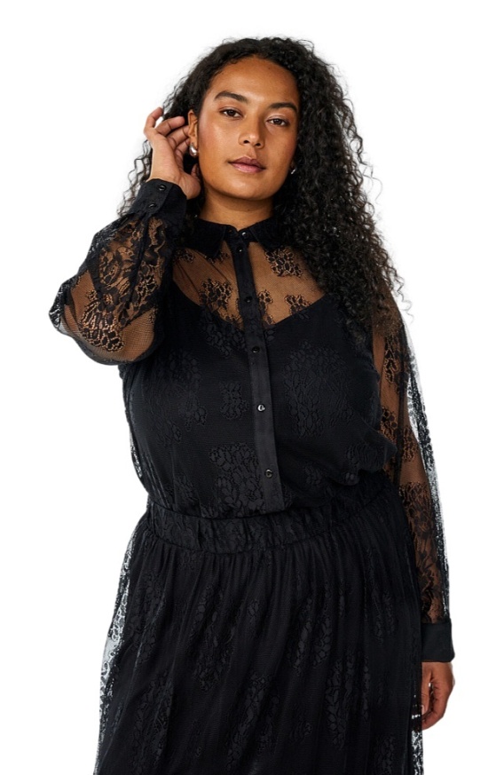 ZIZZI PIĘKNA CZARNA KORONKOWA BLUZKA KOSZULA 140B