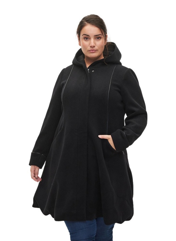 ZIZZI PIĘKNY CZARNY PŁASZCZ Z KAPTUREM WEŁNA 758B