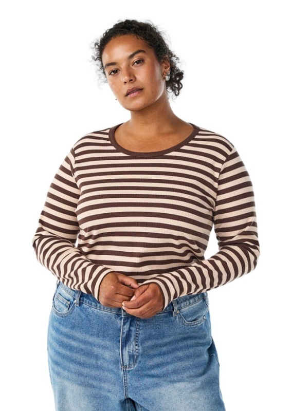 ZIZZI PRĄŻKOWANA BRĄZOWA BLUZKA PASKI BAWEŁNA 431A
