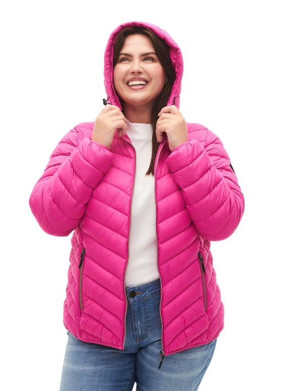 ZIZZI PRZEJŚCIOWA PIKOWANA KURTKA KAPTUR OSTRY RÓŻ 734F