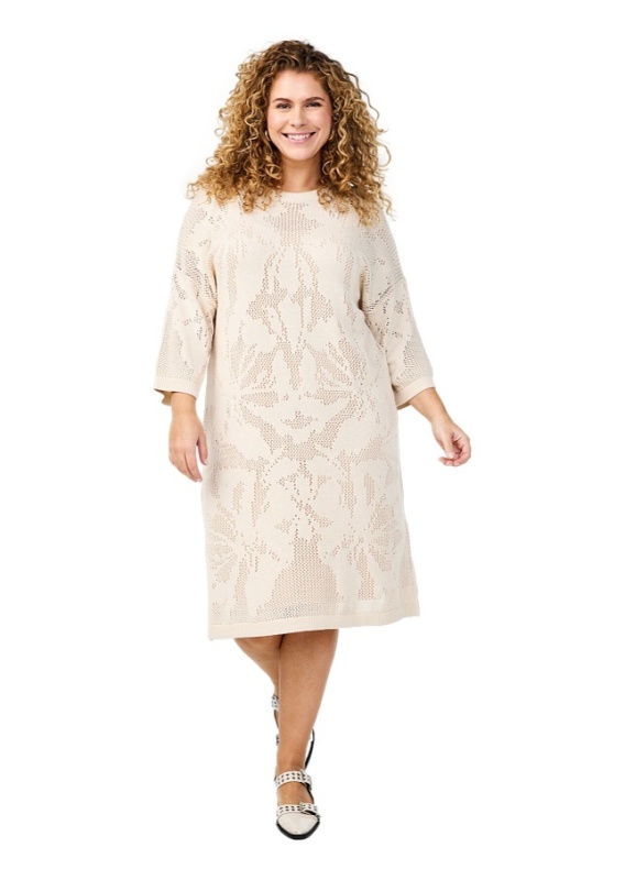 ZIZZI ŚLICZNA BEŻOWA DZIANINOWA SUKIENKA AŻUR 436C